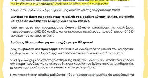 Με αφορμή τον μήνα πρόληψης για τον καρκίνο του μαστού, ο Σύλλογος Γονέων Παιδιών και Ενηλίκων με Νεοπλασματική Ασθένεια και…